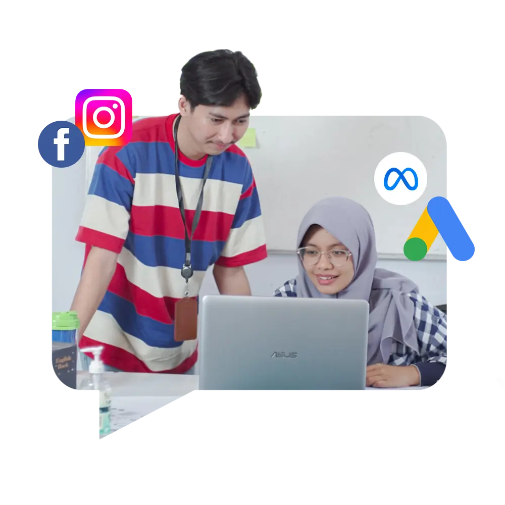 Pelajari skill strategi iklan, pengelolaan konten, hingga analisis data pemasaran dengan portofolio nyata, dapatkan sertifikat resmi yang diakui kemendikbud dan instansi pemerintahan.